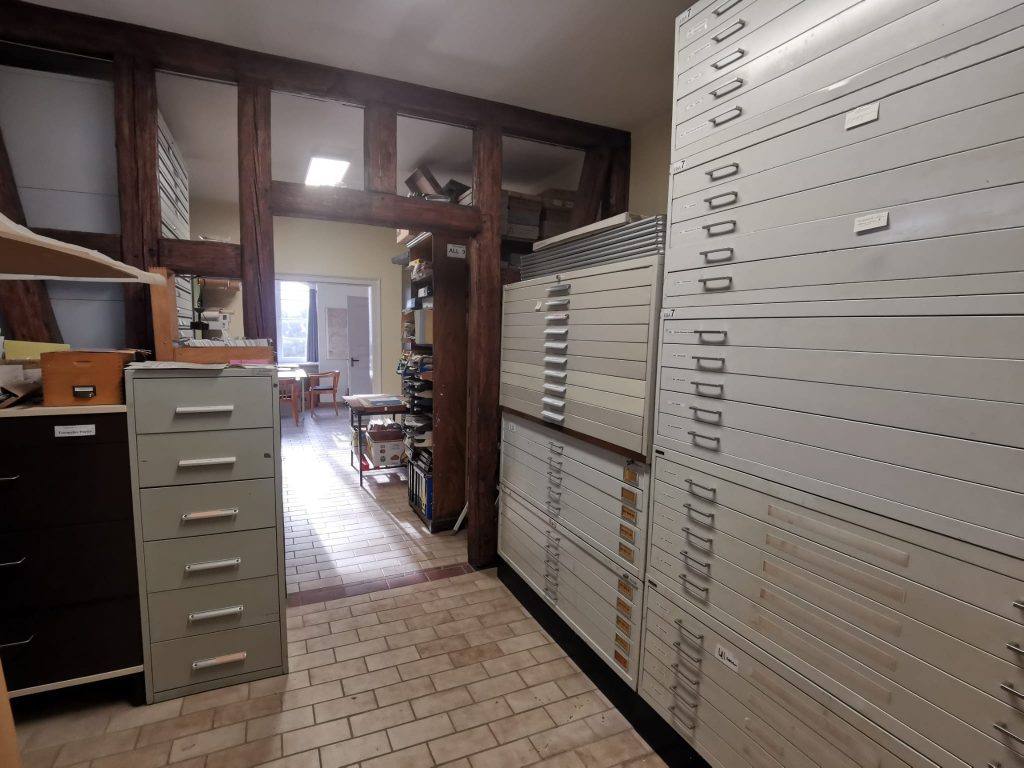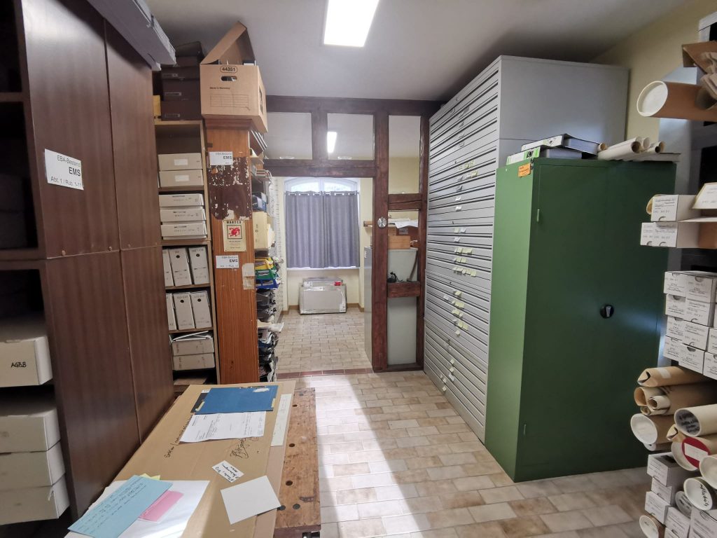 Der Aufbau des Emser Bergbau-Archivs begann 1984, als durch die Stiftung unseres damaligen Mitglieds Alois Franz zwei Lieferwagenfuhren Akten- und Planmaterial des ehemaligen Bergwerksbetreibers „Stolberger Zink AG“ übernommen werden konnten. Diese Unterlagen – jahrelang unbeachtet in einem alten Schuppen gelagert – wurden mühevoll gesichtet und sortiert und bildeten den Grundstock der heutigen Archivbestände.