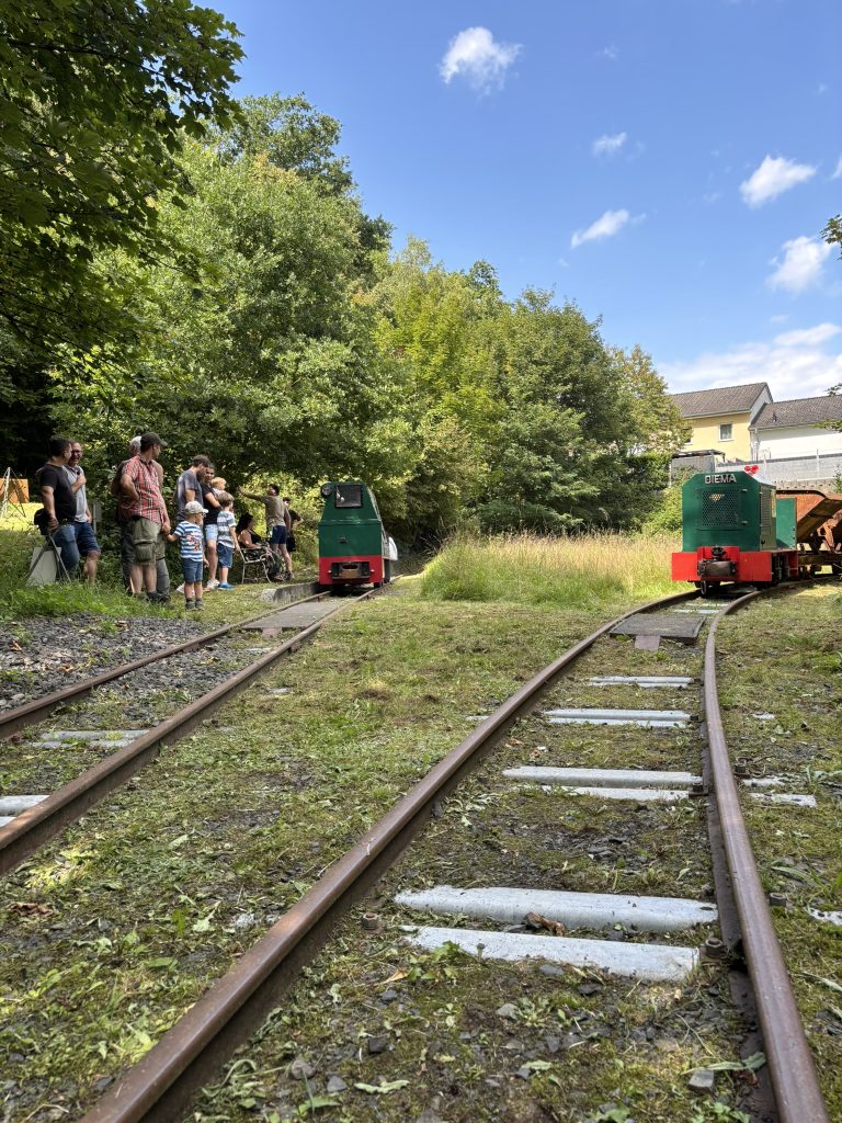 Alle Freunde schmalspuriger Eisenbahnen sowie eines pünktlichen Schienenverkehrs sollten sich den 09. August 2025 (Samstag) ab 15.15 Uhr vormerken. Dann besteht die Möglichkeit, auf der Emser Hütte vom Rad und Wanderweg „Alter Bahndamm“ aus einen typischen Feldbahnzug sowie weitere Lokomotiven auf der Strecke des Emser Bergbaumuseums zu beobachten, welche voraussichtlich zweimal die Kehrschleife hinter der Tennishalle bei einigermaßen trockenem Wetter befahren.